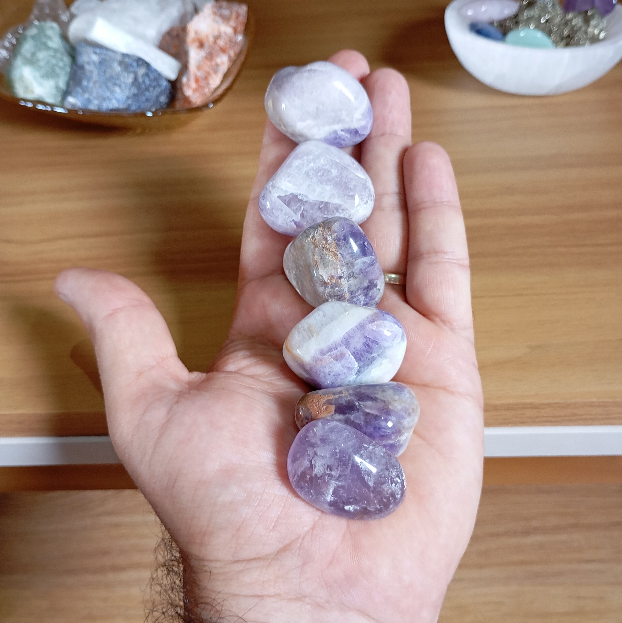 ✅ Acessórios: Use a Ametista em colares, pulseiras ou anéis para carregar suas propriedades espirituais e calmantes ao longo do dia. Ideal para situações que exigem elevação vibracional e conexão espiritual.