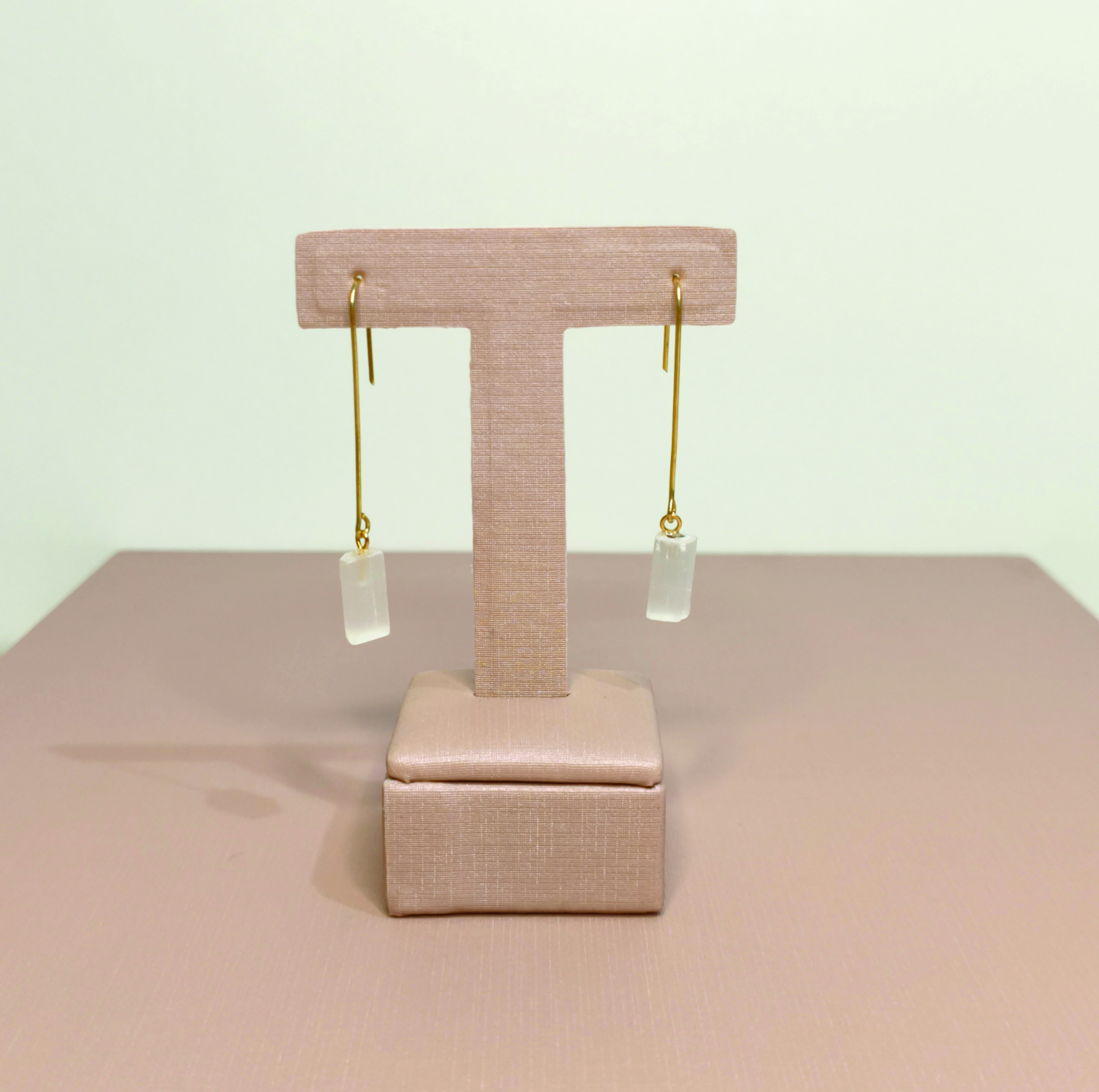Brinco folheado a ouro com pedra natural Selenita