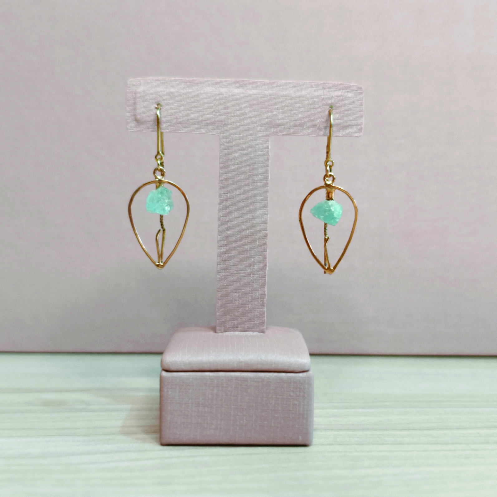 Brinco folheado a ouro com pedra natural Água Marinha