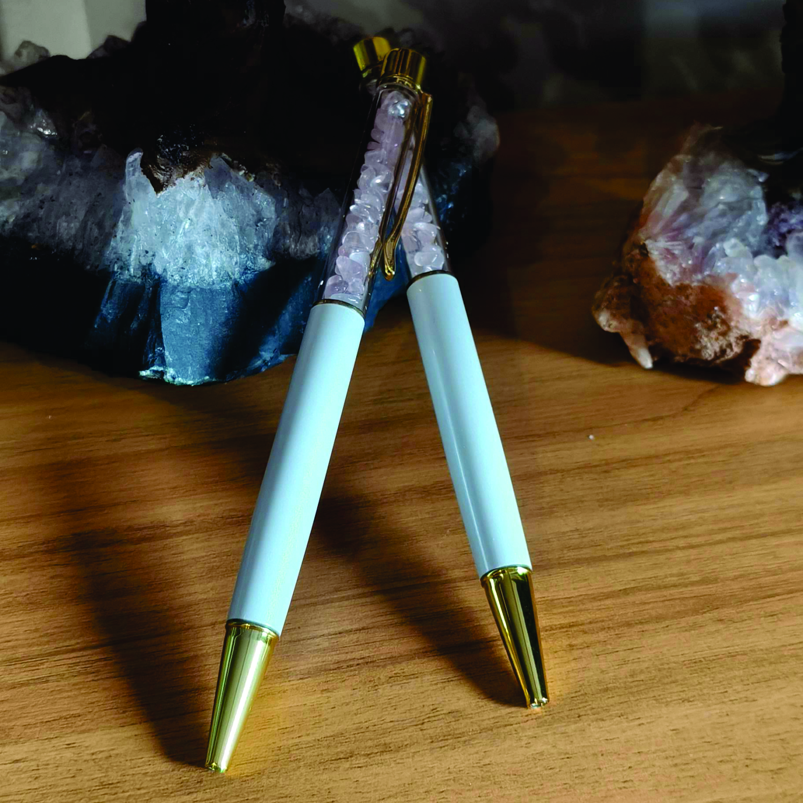 Caneta com Quartzo Rosa