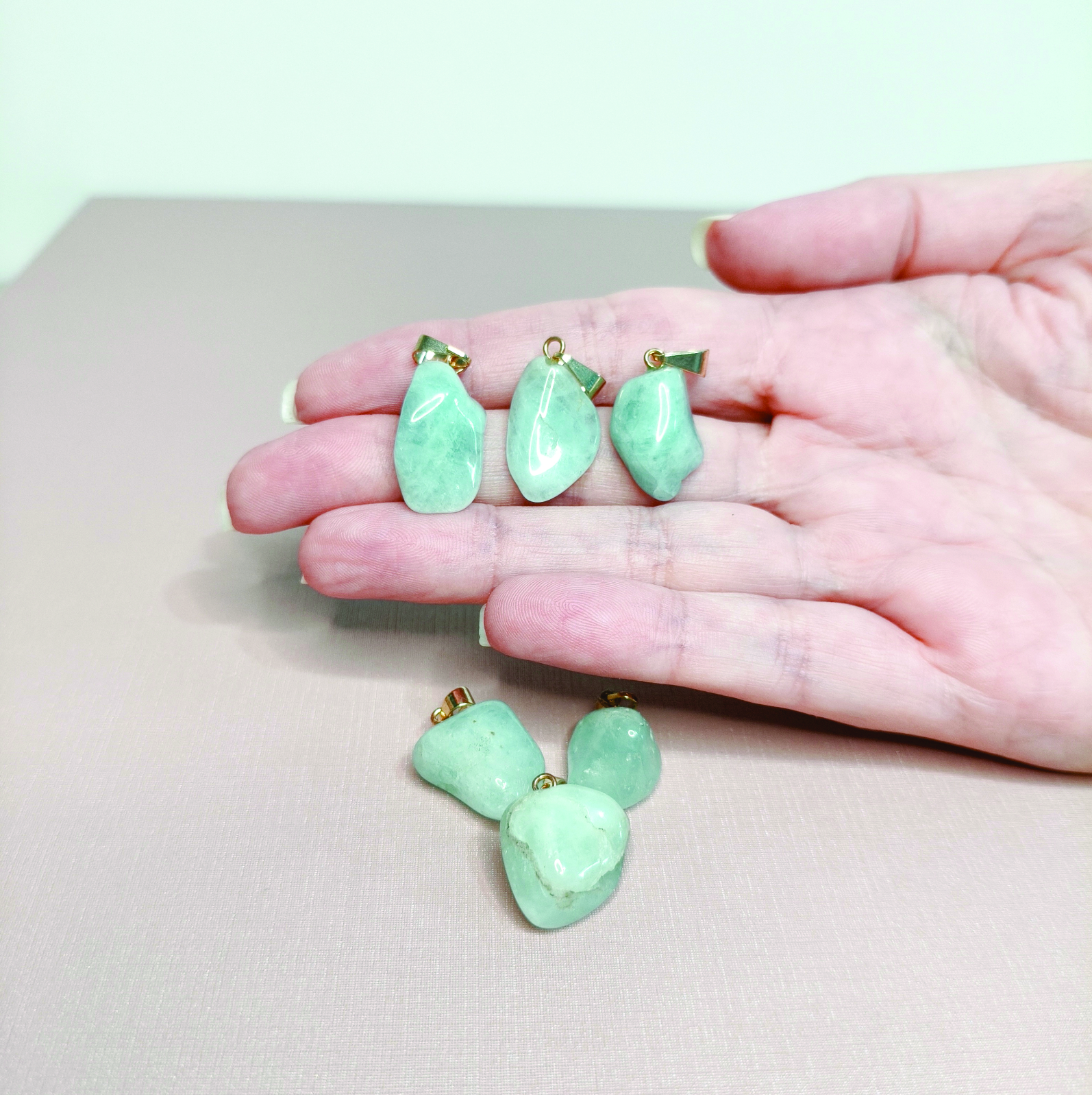 ** Por se tratar de cristais naturais, elas podem variar a tonalidade em relação a foto ou apresentar ranhuras que são naturais das pedras.