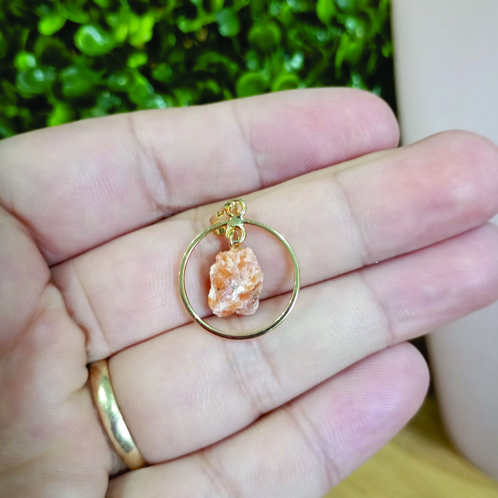 Pingente banhado a ouro com pedra natural Calcita Laranja