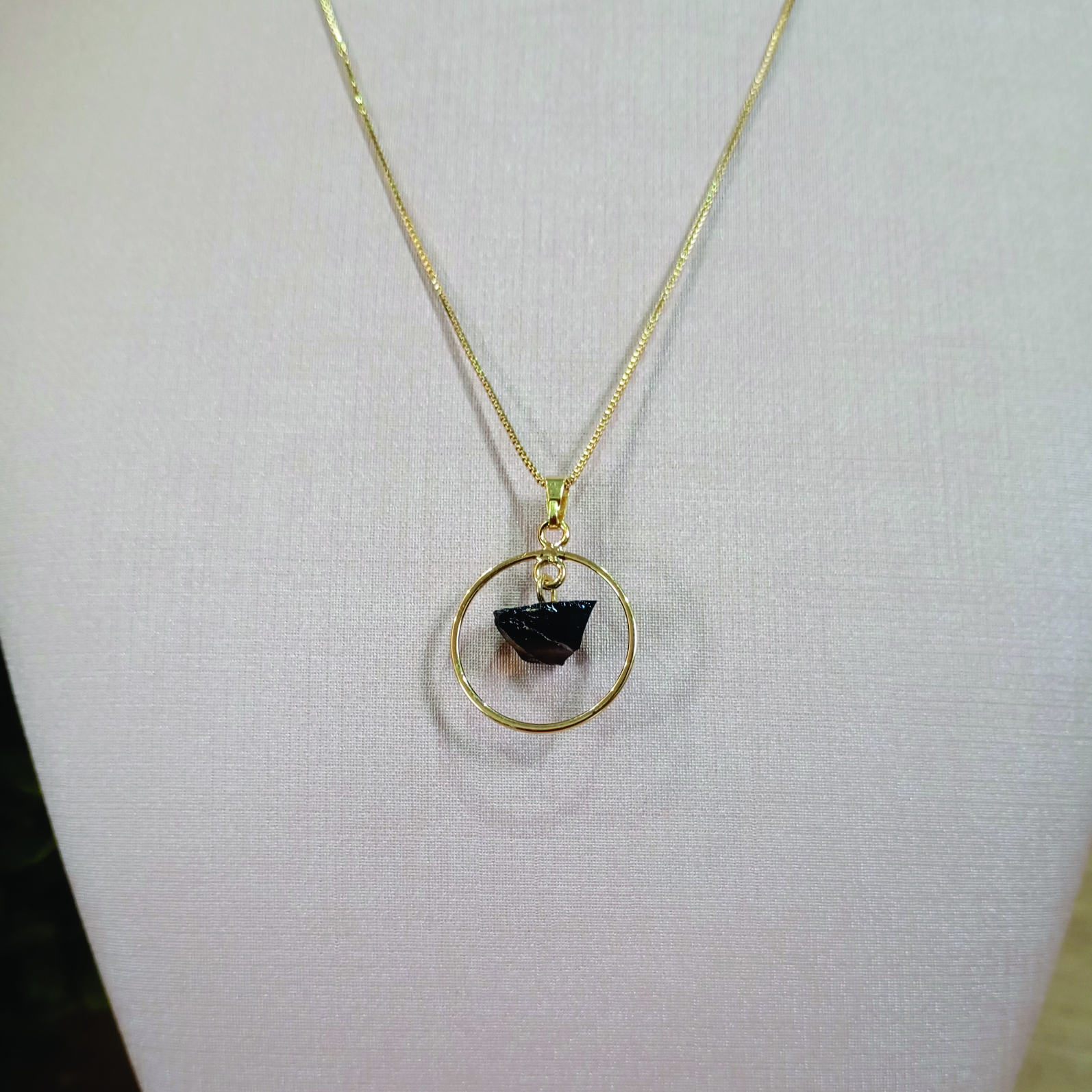 Pingente banhado a ouro com pedra natural Obsidiana Negra