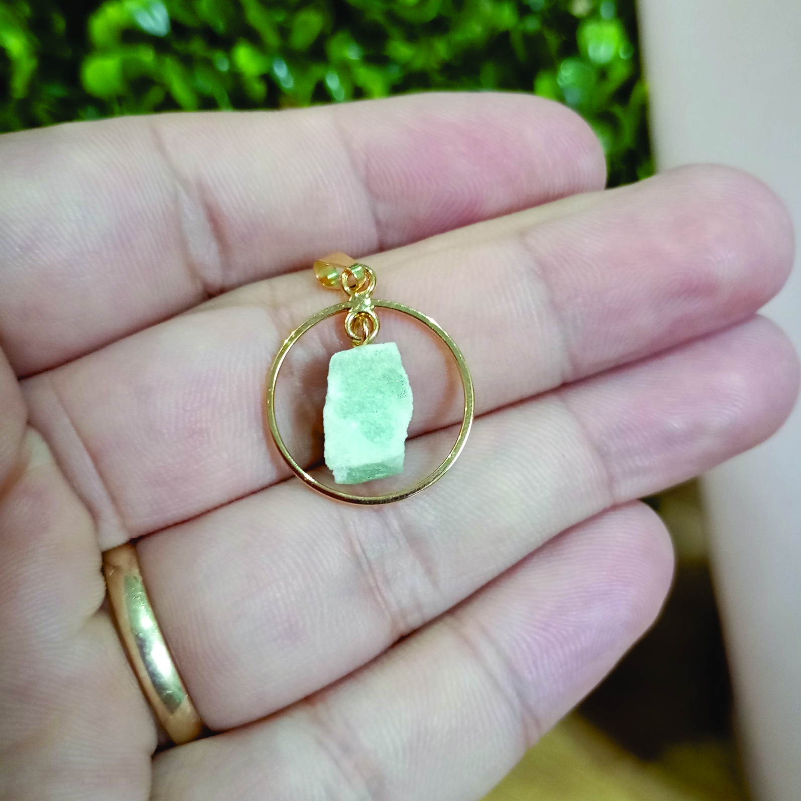 Pingente banhado a ouro com pedra natural Quartzo Verde