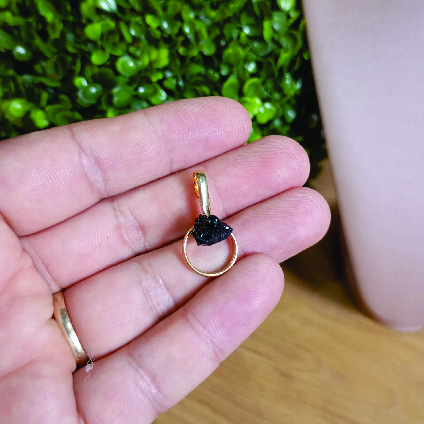 Pingente banhado a ouro com pedra natural Turmalina Negra